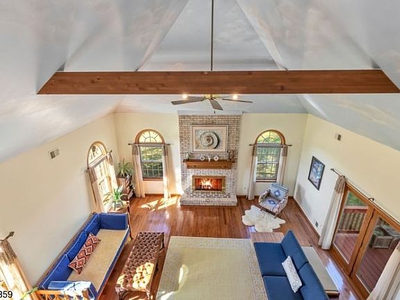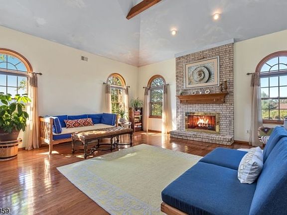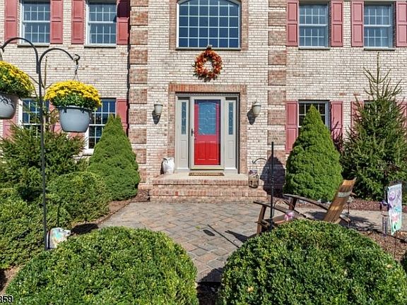 This pristine 4 bedroom 3 full bath brick front Colonial is set back off the road on a private 1.03 acre lot offering views of the tranquil countryside in an exceptional cul-de-sac neighborhood location. Spacious floor plan w bright over-sized windows and wood flooring on both levels. Dramatic 2-story foyer w turned oak staircase and arched window has been freshly painted. Spectacular cathedral ceiling great room w brick surround fireplace and half moon topped windows. Gourmet kitchen features a center island, granite counters, newer stainless steel appliances, abundant cabinetry, stylish light fixtures and breakfast room. Great room and kitchen have sliding glass doors for direct access to the expansive deck and yard perfect for parties and barbecues. Large living room with French doors. Elegant formal dining room w beautiful decorative moldings. Primary bedroom suite has a walk-in organized closet and Juliet balcony. Lavish primary bath w jetted tub, stall shower and dual sinks. Big secondary bedrooms have great closet space. Private office has a bump out bay window. Beautifully finished basement w large office and huge recreation game rooms. Convenient laundry mudroom. 1st floor full bath. Tons of storage space. New Roof! Organic vegetable garden. Fantastic commuting location near Routes 78, 31, 22 and bus train service. Close to historic Clinton for shopping and dining. Near numerous recreation areas including Round Valley. Excellent Schools including Blue Ribbon North Hunterdon High School.