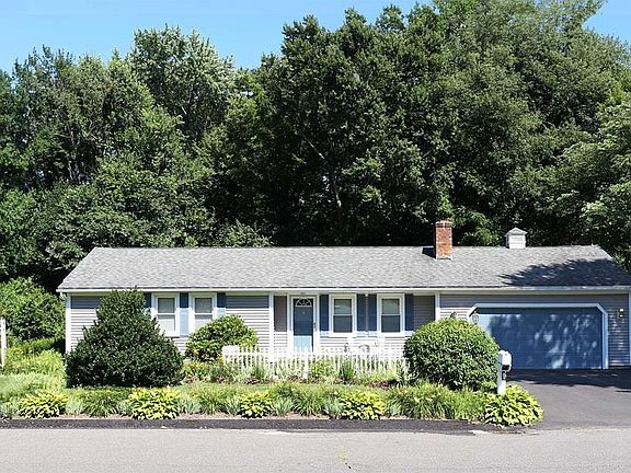 Charming & wonderfully maintained home located on a quiet dead end street in a great area of Agawam. Short walk to CT River Walk Way & Bike Trail. Vinyl siding, vinyl replacement windows, gas heat & low taxes means minimal costs to own this great home! Large eat-in kitchen leads to the covered porch that overlooks the beautifully landscaped back yard. Bright & spacious living room w/ hardwood flooring & a wood fireplace. Large master bedroom w/ hardwood flooring, ceiling fan & a half bath. Bedroom #2 is large enough to be another master bedroom, also has hardwood flooring & a ceiling fan. 3rd bedroom could also be a perfect home office. Want more? Over-sized 2 car garage, partially finished basement w/ wood fireplace & an additional partially finished room as well and a set tub. Roof only 13 years old, apo, (30 yr shingle), beautiful perennials in the front & back yard, lots of storage space. Minutes to the new Splash Park, Concert Shell at School Street Park & Rt 91 & Rt 57.