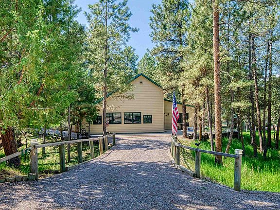 Come see this custom-built 2 BR/2 Bath home nestled among pine trees in the Black Hills of Wyoming on 4 acres. This quality-constructed 2,320 sq. ft. house sits in a park-like setting just minutes from Keyhole Reservoir and Pine Haven. The property features impressive outbuildings including a 38'x38' man cave building w/living quarters/kitchen/bathroom, 30'x40' pole building, detached 2-car garage, and a guest cabin. Enjoy the stunning landscaping, gorgeous garden w/garden shed, storage sheds, walk-in cooler, and an outhouse to boot! The home includes a high-quality water filtration system, vaulted ceilings, multiple heating options, making this retreat perfect for those seeking peaceful Wyoming living with modern conveniences and outdoor recreational opportunities nearby. All buildings are in impeccable condition. This is truly one of those outstanding properties that you must see to believe! $975,000