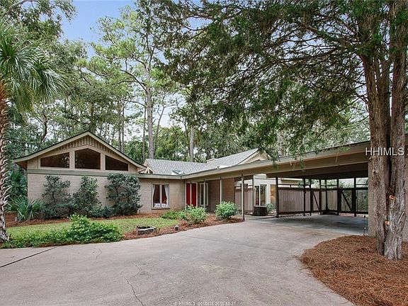 Stunning contemporary home in the heart of Heritage Woods, right next to the beach path. It has been the weekend escape of an Atlanta family since it was custom designed in 1973 by Doug Corkern, a founding Sea Pines architect. Take a 5-minute walk to the best beach on the island. Freshly painted, popcorn removed and new flooring installed in 2018. Two light & bright living areas, lovely Great Room with volume ceilings and fireplace; 3 bedrooms and 2 baths. Massive master. Exercise room off master could be repurposed for many uses. Windows designed to catch the sun all day long. New roof 2017. Ample room for a pool. 15'3" elevation.