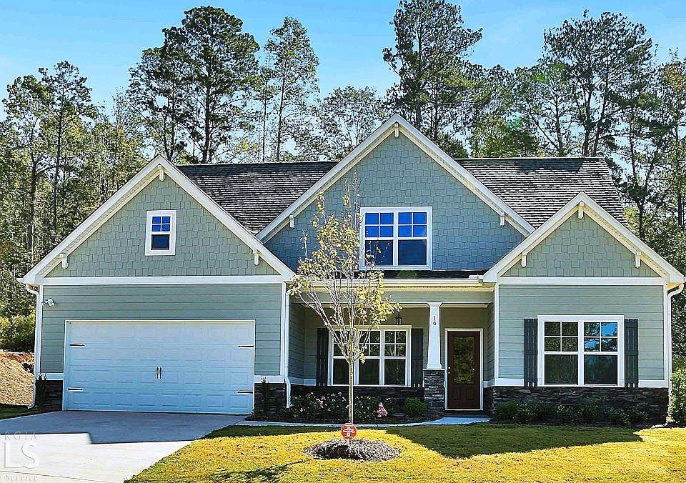 Dansby B former model home. 4 bedrooms, 3 baths. Master and one other bedroom on main. Two bedrooms and full bath upstairs. Kitchen with island is open to vaulted great room. Formal dining room. Upgraded hardwood, cabinets,and ship lap trim. Covered front and back porches, with exterior fireplace Fully sodded lawn and irrigation system.