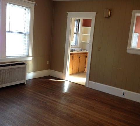 Rare Find! Quiet tree lined dead-end street just a 3-minute walk to downtown Northampton. NO FEE. 2 bedrooms, 1 bath with hardwood floors and plenty of natural light. Kitchen and living room on first floor, bedrooms and bath on the second. Private screened in front porch and outdoor space for a grill. On street parking with one parking spot during snow emergencies. New washer and dryer, basement storage, trash and snow removal, lawn service and water all included. Small, well behaved pets welcome. Oil heat and gas stove. Rent $1,250 plus utilities. No fee. $1,250 per month plus utilities. NO FEE.