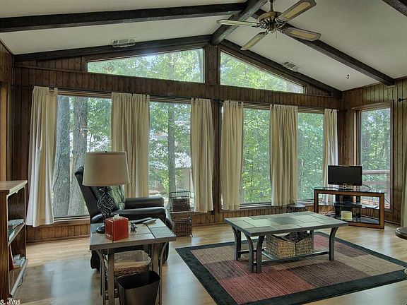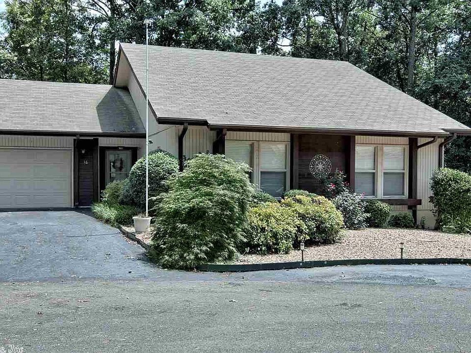 SIMPLY PERFECT AND ALL ON 1 LEVEL!!! EVERYTHING IS SPECIAL IN THIS 3 BR, 2 BA TH, BUT THE ARKANSAS ROOM IS SPECTACULAR WITH VAULTED CEILINGS, WOODEN BEAMS AND 3 WALLS OF WINDOWS. GRANITE KITCHEN COUNTERS. ADJOINING BREAKFAST RM ACCESSES THE COVERED DECK. PATIO DOORS OPEN TO THE DECK FROM THE AR ROOM AS WELL. EXTRA LG MBR, UPDATED BATHS, FP AND GARAGE. ENJOY WOODSY VIEWS WITH LAKEVIEWS IN WINTER AND FALL. A WALKING BRIDGE TO THE FITNESS CTR AND TENNIS CTS IS VERY CLOSE. TOWN HOME FEE $85 MO.