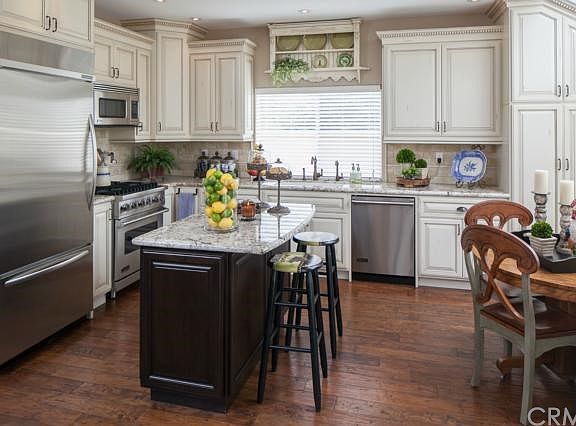 This immaculate 4 bedroom single family home is located in the prestigious community of Marina Hills in Laguna Niguel! Highly sought-after floorplan with 3 bedrooms upstairs and 1 bedroom downstairs plus full bathroom. A three car garage provides plenty of space for parking and storage. Upgrades include a completely renovated kitchen with new cabinets and counter tops, new distressed wood flooring and baseboards, recessed lighting, beautiful backyard pavers, and more. All new plumbing! This corner lot is elevated and near the green belt so affords privacy. Part of Marina Hills HOA and includes tennis courts, large swimming pool, clubhouse, basketball courts, soccer field, and baseball field. Conveniently located near major shopping centers, schools, parks, and is also a short 5 minute drive to the beach. FHA approved. Don?t miss this rare opportunity!
