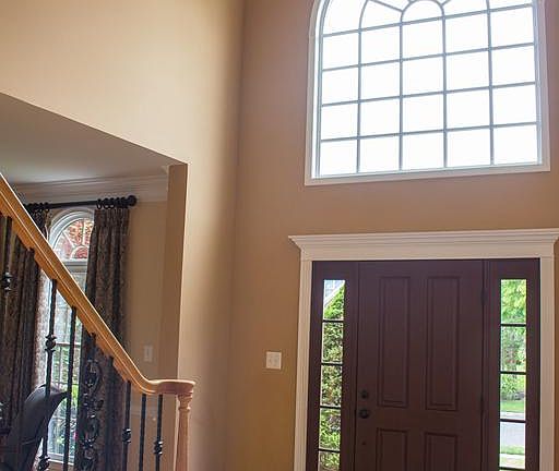 This is the popular Eaton model with 2800+ square feet in Moorestown Hunt. House sits on an oversized lot compared to standard at .29 acres. Front and back yard have irrigation. Rear yard offers a large hardscape patio with exterior accent lighting. Front exterior is brick with architectural coining at the corners. Upgraded garage doors add to the great curb appeal. Enter in to a two story foyer with upgraded staircase. Living room and dining room combination on one side with crown molding and chair molding along with accent columns breaking up the rooms.On the other side of the foyer is an office that can also flex as a guest room as the bathroom was expanded to a full bath at the time of the build and has a door from the office to the bathroom. The kitchen offers updated SS appliances, solid surface counters and an island with seating. Eat in area was bumped out at the build and offers bright natural light and extra space for table and chairs. Great room has vaulted ceilings, sun lites and a fireplace. Hardwoods throughout the first floor for easy cleaning. First floor laundry is off the kitchen. The mudroom off the laundry area was expanded and includes customized storage cubbies perfect for organization. Upstairs there are 4 bedrooms a master bath with walk in shower and jacuzzi tub. Both bathrooms upstairs have dual sinks in each. The lower level basement is partially finished with a large gathering area, a wet bar area with small bar top and a half bath all perfect for entertaining. Take time to see everything this home has to offer.