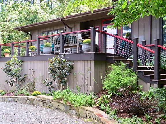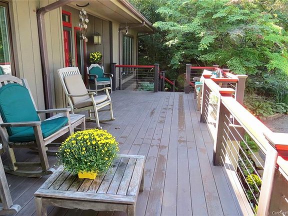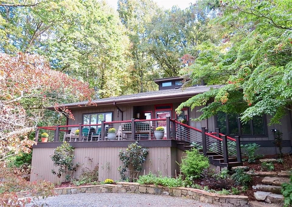 Located in the Glen Cannon subdivision this home is nestled on a wooded cul-de-sac close to the entrance of Glen Cannon and only 5 minutes to downtown Brevard, NC. You will enjoy 3 bedrooms with 2 full baths and 2 half baths. Unique architectural design makes this home one of a kind. The floor plan is ideal for one level living with large open rooms, guest quarters downstairs. Lot is beautifully landscaped with stone paths and water features. The interior offers many upgrades such as hardwood flooring, a fantastic kitchen with granite countertops, copper farmhouse sink, extra large island with granite countertops and copper vegetable sink, 5 burner range and double sided fireplace. You will also enjoy a large master suite with his and her baths. Great flex spaces downstairs which could be used for exercise, arts and crafts or workshop. Lovely mountain view from living room, office and front deck, shaded wooded view from side deck. This home is great for entertaining.
