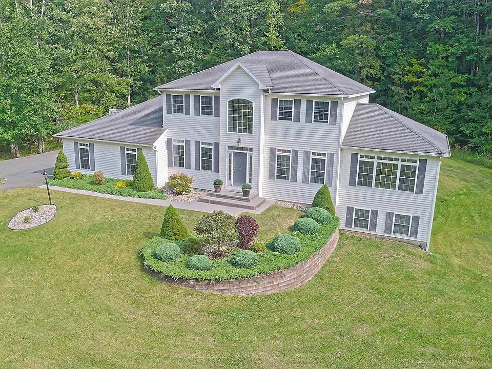 Situated on a private park like 1 acre setting sits this spacious center hall colonial with custom in-law suite featuring private entrance. Soaring 2 story foyer with HW flrs and generous room sizes throughout allowing for effortless entertaining. Large eat in kitchen with center island and breakfast area leads to an over-sized family room with tall ceilings and tons of windows with transoms allowing for year round sunshine. Formal LR and DR as well a 1st flr study. Large master suite with walk in closet and full bath/jacuzzi tub. Great back yard features in ground pool and lots of privacy. Full fin basement is an extended ( In Law) living space w/walkout basement. 3 car side load garage and tons of curb appeal.