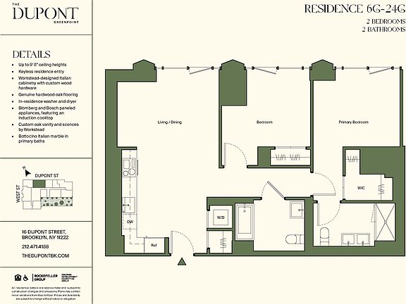 Meet The Dupont, a 41-story residential tower crafted with meticulous design and unmatched views of the East River and Manhattan skyline. This exceptional residential tower offers a collection of studio, 1, 2, and 3-bedroom residences designed by the award-winning Brooklyn-based AD100 interior design team, Workstead. Residences feature ceiling heights of up to 9' 8" and genuine hardwood oak flooring. Modern conveniences include keyless entry access, energy-efficient climate control, and in-unit washer and dryers. Designed by the acclaimed Workstead team, kitchens showcase Italian cabinetry with custom hardware, Bosch induction cooktops, and quartz countertops. Select residences also offer panelized Blomberg appliances and custom Workstead light fixtures. Bathrooms are luxuriously appointed with Bottocino Italian marble, custom oak vanities, and frameless glass showers in select units. Delight in the Design at The Dupont, where thoughtful design and over 20,000 square feet of indoor and outdoor amenities come together in perfect harmony. -24/7 attended lobby -Rooftop Clubhouse with a heated outdoor swimming pool and sundeck -Private Dining Lounge with fully-equipped kitchen, terrace, and Manhattan skyline and river views - Social Lounge with fully-equipped kitchen, entertaining area, and gaming room -Garden Terrace with BBQ stations, al-fresco dining, and lounge area -The Spa with an infrared sauna and private treatment rooms -Fitness Center outfitted by Technogym and Peloton -Yoga Studio -Craft Studio with art supplies and essentials by TULU -Children's Playroom -On-site parking with electric car charging stations Discover Greenpoint, a vibrant neighborhood where historic charm meets modern sophistication. Enjoy a diverse culinary scene, unique boutique shopping, and beautiful waterfront parks. With bike-friendly with several bike lanes and paths, nearby transit also includes the NYC Ferry, G, and L trains, and a multitude of bus lines. Schedule a tour today to experience life at The Dupont. Now Leasing.