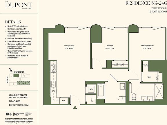 Meet The Dupont, a 41-story residential tower crafted with meticulous design and unmatched views of the East River and Manhattan skyline. This exceptional residential tower offers a collection of studio, 1, 2, and 3-bedroom residences designed by the award-winning Brooklyn-based AD100 interior design team, Workstead. Residences feature ceiling heights of up to 9' 8" and genuine hardwood oak flooring. Modern conveniences include keyless entry access, energy-efficient climate control, and in-unit washer and dryers. Designed by the acclaimed Workstead team, kitchens showcase Italian cabinetry with custom hardware, Bosch induction cooktops, and quartz countertops. Select residences also offer panelized Blomberg appliances and custom Workstead light fixtures. Bathrooms are luxuriously appointed with Bottocino Italian marble, custom oak vanities, and frameless glass showers in select units. Delight in the Design at The Dupont, where thoughtful design and over 20,000 square feet of indoor and outdoor amenities come together in perfect harmony. 24/7 attended lobby -Rooftop Clubhouse with a heated outdoor swimming pool and sundeck Private Dining Lounge with fully-equipped kitchen, terrace, and Manhattan skyline and river views - Social Lounge with fully-equipped kitchen, entertaining area, and gaming room Garden Terrace with BBQ stations, al-fresco dining, and lounge area The Spa with an infrared sauna and private treatment rooms Fitness Center outfitted by Technogym and Peloton Yoga Studio Craft Studio with art supplies and essentials by TULU -Children's Playroom On-site parking with electric car charging stations Discover Greenpoint, a vibrant neighborhood where historic charm meets modern sophistication. Enjoy a diverse culinary scene, unique boutique shopping, and beautiful waterfront parks. With bike-friendly with several bike lanes and paths, nearby transit also includes the NYC Ferry, G, and L trains, and a multitude of bus lines. Schedule a tour today to experience life at The Dupont. Now Leasing.