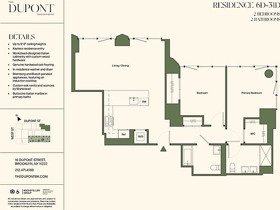 Meet The Dupont, a 41-story residential tower crafted with meticulous design and unmatched views of the East River and Manhattan skyline. This exceptional residential tower offers a collection of studio, 1, 2, and 3-bedroom residences designed by the award-winning Brooklyn-based AD100 interior design team, Workstead. Residences feature ceiling heights of up to 9' 8" and genuine hardwood oak flooring. Modern conveniences include keyless entry access, energy-efficient climate control, and in-unit washer and dryers. Designed by the acclaimed Workstead team, kitchens showcase Italian cabinetry with custom hardware, Bosch induction cooktops, and quartz countertops. Select residences also offer panelized Blomberg appliances and custom Workstead light fixtures. Bathrooms are luxuriously appointed with Bottocino Italian marble, custom oak vanities, and frameless glass showers in select units. Delight in the Design at The Dupont, where thoughtful design and over 20,000 square feet of indoor and outdoor amenities come together in perfect harmony. 24/7 attended lobby -Rooftop Clubhouse with a heated outdoor swimming pool and sundeck Private Dining Lounge with fully-equipped kitchen, terrace, and Manhattan skyline and river views - Social Lounge with fully-equipped kitchen, entertaining area, and gaming room Garden Terrace with BBQ stations, al-fresco dining, and lounge area The Spa with an infrared sauna and private treatment rooms Fitness Center outfitted by Technogym and Peloton Yoga Studio Craft Studio with art supplies and essentials by TULU -Children's Playroom On-site parking with electric car charging stations Discover Greenpoint, a vibrant neighborhood where historic charm meets modern sophistication. Enjoy a diverse culinary scene, unique boutique shopping, and beautiful waterfront parks. With bike-friendly with several bike lanes and paths, nearby transit also includes the NYC Ferry, G, and L trains, and a multitude of bus lines. Schedule a tour today to experience life at The Dupont. Now Leasing.