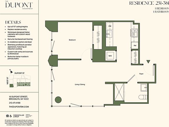 Meet The Dupont, a 41-story residential tower crafted with meticulous design and unmatched views of the East River and Manhattan skyline. This exceptional residential tower offers a collection of studio, 1, 2, and 3-bedroom residences designed by the award-winning Brooklyn-based AD100 interior design team, Workstead. Residences feature ceiling heights of up to 9' 8" and genuine hardwood oak flooring. Modern conveniences include keyless entry access, energy-efficient climate control, and in-unit washer and dryers. Designed by the acclaimed Workstead team, kitchens showcase Italian cabinetry with custom hardware, Bosch induction cooktops, and quartz countertops. Select residences also offer panelized Blomberg appliances and custom Workstead light fixtures. Bathrooms are luxuriously appointed with Bottocino Italian marble, custom oak vanities, and frameless glass showers in select units. Delight in the Design at The Dupont, where thoughtful design and over 20,000 square feet of indoor and outdoor amenities come together in perfect harmony. 24/7 attended lobby -Rooftop Clubhouse with a heated outdoor swimming pool and sundeck Private Dining Lounge with fully-equipped kitchen, terrace, and Manhattan skyline and river views - Social Lounge with fully-equipped kitchen, entertaining area, and gaming room Garden Terrace with BBQ stations, al-fresco dining, and lounge area The Spa with an infrared sauna and private treatment rooms Fitness Center outfitted by Technogym and Peloton Yoga Studio Craft Studio with art supplies and essentials by TULU -Children's Playroom On-site parking with electric car charging stations Discover Greenpoint, a vibrant neighborhood where historic charm meets modern sophistication. Enjoy a diverse culinary scene, unique boutique shopping, and beautiful waterfront parks. With bike-friendly with several bike lanes and paths, nearby transit also includes the NYC Ferry, G, and L trains, and a multitude of bus lines. Schedule a tour today to experience life at The Dupont. Tenant Fees & Responsibilities Prospective residents are responsible for the following fees, subject to lease or service agreement terms: Application Fee: $20 per person Security Deposit: 1 Month's rent Amenities Fee: $100 per month per tenant for 3rd Floor Amenities Pool Fee: $1,000 per season per tenant for Pool and Pool Lounge on 38th Floor. $400 Pet Fee Storage: Pricing and Availability TBD Utilities: Rent includes water; residents cover electricity, cable, and internet. Now Leasing.