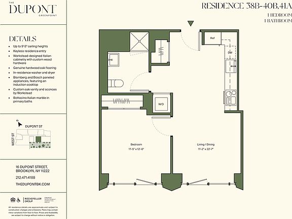FEATURING PANORAMIC OPEN VIEWS! AVAILABLE FOR IMMEDIATE OCCUPANCY. Meet The Dupont, a 41-story residential tower crafted with meticulous design and unmatched views of the East River and Manhattan skyline. This exceptional residential tower offers a collection of studio, 1, 2, and 3-bedroom residences designed by the award-winning Brooklyn-based AD100 interior design team, Workstead. Residences feature ceiling heights of up to 9' 8" and genuine hardwood oak flooring. Modern conveniences include keyless entry access, energy-efficient climate control, and in-unit washer and dryers. Designed by the acclaimed Workstead team, kitchens showcase Italian cabinetry with custom hardware, Bosch induction cooktops, and quartz countertops. Select residences also offer panelized Blomberg appliances and custom Workstead light fixtures. Bathrooms are luxuriously appointed with Bottocino Italian marble, custom oak vanities, and frameless glass showers in select units. Delight in the Design at The Dupont, where thoughtful design and over 20,000 square feet of indoor and outdoor amenities come together in perfect harmony. 24/7 attended lobby -Rooftop Clubhouse with a heated outdoor swimming pool and sundeck Private Dining Lounge with fully-equipped kitchen, terrace, and Manhattan skyline and river views - Social Lounge with fully-equipped kitchen, entertaining area, and gaming room Garden Terrace with BBQ stations, al-fresco dining, and lounge area The Spa with an infrared sauna and private treatment rooms Fitness Center outfitted by Technogym and Peloton Yoga Studio Craft Studio with art supplies and essentials by TULU -Children's Playroom On-site parking with electric car charging stations Discover Greenpoint, a vibrant neighborhood where historic charm meets modern sophistication. Enjoy a diverse culinary scene, unique boutique shopping, and beautiful waterfront parks. With bike-friendly with several bike lanes and paths, nearby transit also includes the NYC Ferry, G, and L trains, and a multitude of bus lines. Schedule a tour today to experience life at The Dupont. Tenant Fees & Responsibilities Prospective residents are responsible for the following fees, subject to lease or service agreement terms: Application Fee: $20 per person Security Deposit: 1 Month's rent Amenities Fee: $100 per month per tenant for 3rd Floor Amenities Pool Fee: $1,000 per season per tenant for Pool and Pool Lounge on 38th Floor. $400 Pet Fee Storage: $125 per month and up Utilities: Rent includes water; residents cover electricity, cable, and internet. Now Leasing.