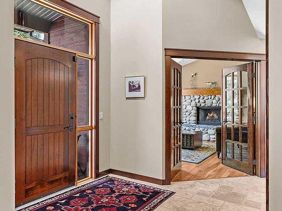 This 5-bedroom, 4046 sq ft home in the peaceful enclave of Blue Grouse Ridge offers space, comfort and mountain charm. The generous foyer opens into a spacious Great Room, featuring rich walnut flooring. In addition, select sections—such as the foyer, powder room, main-level hallway and mudroom, feature elegant travertine flooring, offering timeless natural stone appeal and durability. The living room boasts a striking Rundle stone gas fireplace and vaulted ceilings. The custom kitchen is thoughtfully designed with a premium Wolf Gourmet Range and a large island—perfect for culinary enthusiasts. Also on the main level is a spacious dining room that opens onto a large, sun-filled view deck—complete with a luxurious hot tub, rear yard, and an impressive outdoor stone wood-burning fireplace, ideal for entertaining or relaxing under the stars. The family room, with vaulted ceilings and a cozy Riverstone wood-burning fireplace, is framed by French doors that offer privacy. Up the Walnut staircase with elegant wrought-iron railings, you'll find a serene master retreat with vaulted ceilings and a spa-like ensuite, featuring a steam shower and soaker tub. Two additional bedrooms and a four-piece bath complete the upper level. The lower level includes a home theatre room, a gym or games area, two additional bedrooms and a 4-piece bathroom, a wine cellar, an enormous storage room—and in-slab heating throughout for year-round comfort.