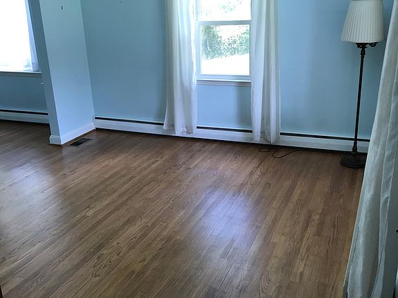 Clean 4 bedroom/2.5 baths. 1300 sq. ft. of living space at the end of a dead end street. No thru traffic! Central air on main level, window unit in upstairs bedroom. Ceiling fans. 3 burner stove and double oven. Ice maker. Covered front porch. Off street parking. The garage is not available at this time but will be. Flat lot is bordered by trees and a small stream. Hardwood floors and natural light. Full basement with plenty of storage area and energy efficient washer and dryer. No pets. Renter to regularly cut the lawn, riding mower is provided. One month deposit required. Tenant to pay utilities: water, gas & electric, cable.