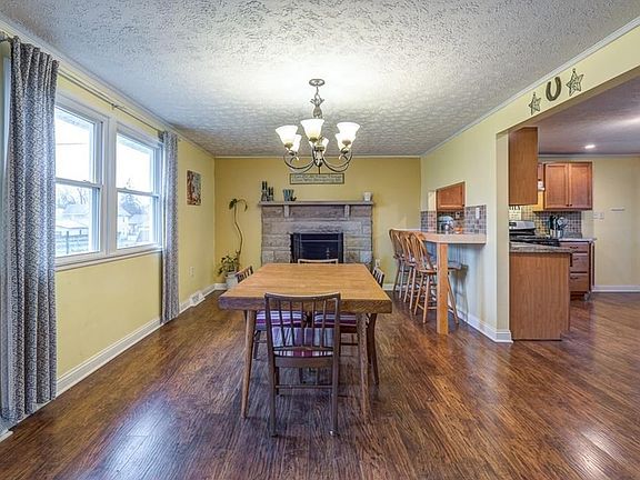 Nice home nestled in the village of Donnelsville. You will be impressed by the spacious feel throughout the home. Upon entering you'll notice the updated laminate flooring, a beautiful dark rustic wood feel. The open concept flows throughout the dining room into the kitchen. The dining room has a large picture window, wood burning fireplace that accents the space beautifully. Breakfast bar to enjoy casual meals. Updated kitchen with modern materials, ceramic backsplash, gorgeous cabinetry & trendy light fixtures! The master bedroom is privately situated and offers an on suite bath. Spacious fenced in backyard with a patio for entertaining. Bonus room off the garage, perfect for a workshop. Updates include- roof 07', water heater 11', furnace 11' Affordable living minutes away from I70 & 675.
