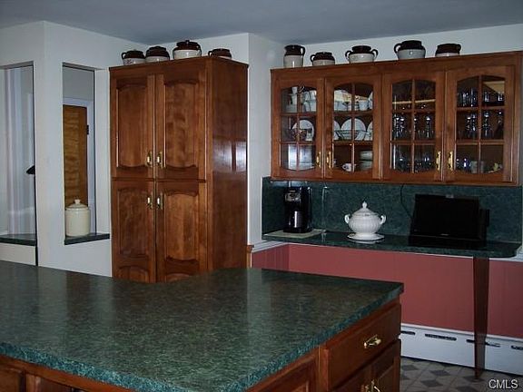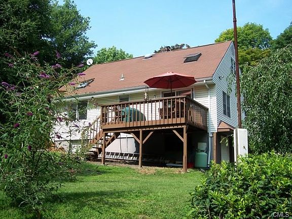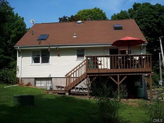 This warm & inviting country cape in a convenient location set on a picturesque lot with a pond offers an abundance of charm & potential! Large, open eat-in-kitchen with generous island & attractive wooden cabinetry leads to deck thru sliders for grilling & enjoying pond views. Spacious living rm with fireplace, skylight, hardwd flr & built-ins can hold the whole family! Unique floor plan & open flow on main level add to home's appeal. Upstairs are 2 sizable bedrms, 1 w/skylight & built-ins & potential for upstairs bath w/ plumbing already in place. Full basement for storage, 1-car garage, large shed/workshop w/woodstove, chicken coop & large lot includes flat lawn areas for outdoor fun. City water & gas in street for potential hook-up.
