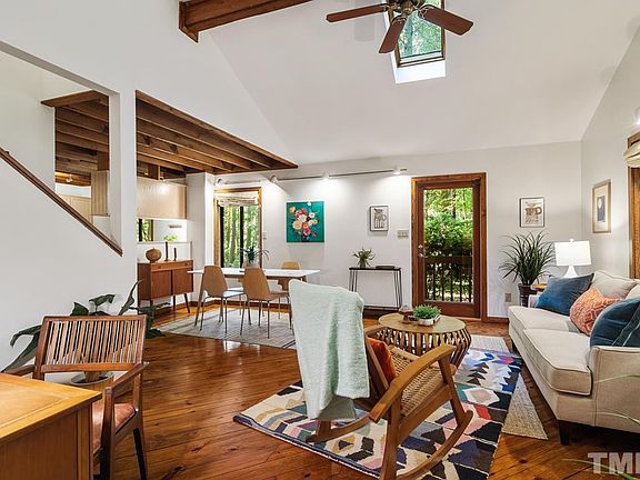 A modern oasis in Dogwood Acres! ; Minutes from everything, this woodland cottage sits on a peaceful 1 acre wooded lot. ; Fenced and ready for dog lovers, bird watchers, and backyard farmers! ; A short walk to Southern Village! ; Updated kitchen w/ quartz countertops and new stainless steel appliances ; Brand new HVAC ; Sealed crawlspace ; Beautiful pine floors ; Open beam and vaulted ceilings with skylight ; Wood stove for cozy winters! ; Chapel Hill Schools w/ county taxes and no HOA! ;