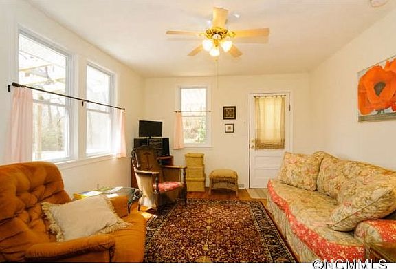 -Light-filled cottage with wrap-around porch & large backyard. Hardwoods in living room & bedrooms. 2nd bedroom has no closet. Charming eat-in kitchen. Spacious mud/laundry room- storage shelves convey. New roof in 2013, & many updates. Bring your green thumb & enjoy the bounty of this sunny yard. Raised vegetable beds, grapes, figs, blueberries & cherries. Convenient west Asheville location. Great opportunity for first-time buyer or investment.