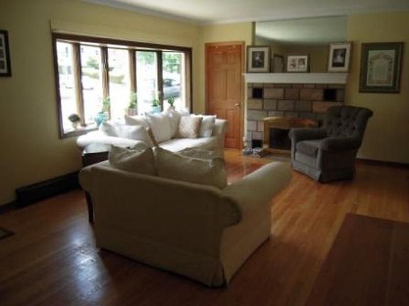 Formal living rm w fireplace, extra long formal dining rm. Eat-in Kit w cherry cabinets, oversized fam rm w fireplace, cathedral ceiling, skylight & walnut pegged flrs. Deck off of kit, huge prop!Special FinancingIncentives available on this property from SIRVAs preferred lender