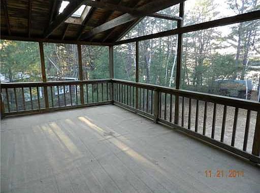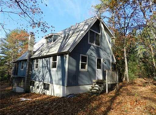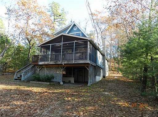 This nice Chalet has wood floors, warm pine walls and a screen porch with some lake views. Open kitchen with dining area, two bedrooms & full bath on second floor. Association for road maintenance only. Home being sold "As Is".