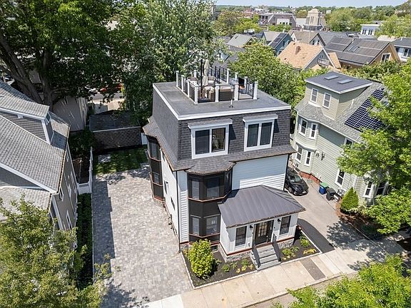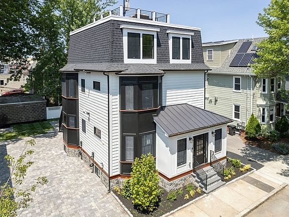 LUXURY PENTHOUSE in the heart of DAVIS SQ - Cambridge/ Somerville Line. Come experience the finest in contemporary living, blending modern sophistication with charm. Start your day by sipping a cup of coffee on your private suite roof deck, have lunch on your second outdoor deck space, and watch the sun set from your spectacular ROOF DECK CROWN.The living room boasts a custom Soapstone Fireplace and Built-in surround sound, creating the ultimate entertainment experience combined with warmth and elegance. The Provincial stained White Oak hardwood floors exude a timeless charm. Incredible double thick "waterfall" MARBLE kitchen island, oversized white farmer's sink, marble backsplash, and high-end Thermador appliances. Enjoy your smart home experience with 'Ring' doorbell, 'Ecobee' thermostat and 36" Wifi enabled range/oven. Three off-street parking spots, complete with an EV charging station and so much more! Truly a one-of-a-kind, "Best in Class," must see home you don't want to miss!