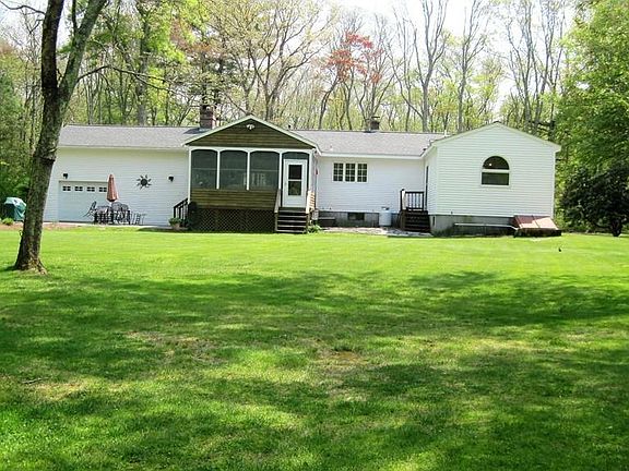 Room to roam in this well maintained home set on an oversized lot with excess frontage providing a private park like yard. One level living with open floor plan consisting of a family room with an entire fireplace wall, recently updated kitchen with newer stainless appliances and 2 season screen porch. Guest bedroom with 1/2 bath and den/bedroom along with a sizable master suite with Juliet balcony and great walk in closet. Finished basement with pellet stove for cold nights, plenty of space for a pool table or extended living. Replacements over the past 4-5 years include Title V approved septic system, roof, well pump, holding tank and filtration system. Generator hook up for those pesky power outages. Enjoy nice summer evenings entertaining on the stamped concrete patio, screen room or privacy of the huge level back yard. For those with tools and equipment there is a 2nd road leading to a storage shed and oversized parking with 10' garage door. So much more to say, come see!