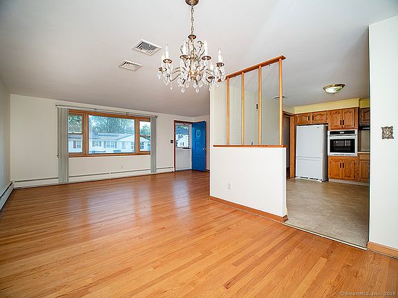 Step into this cozy ranch-style home offering timeless appeal and comfortable living. Featuring beautiful hardwood floors throughout, this one-level gem includes a bright and functional layout with two full baths and a partially finished basement-perfect for extra living space, a home office, or a hobby area. Enjoy outdoor living at its finest with a large deck ideal for entertaining, relaxing, or soaking up the sun. The private, flat yard provides ample space for gardening, play, or peaceful evenings under the stars. While there's no garage, the property offers plenty of potential for future additions or creative storage solutions. The roof is 3 years old, ad the home is in great shape! Whether you're a first-time buyer, downsizing, or seeking a serene escape, this home blends simplicity with charm in a setting that feels like your own private haven.
