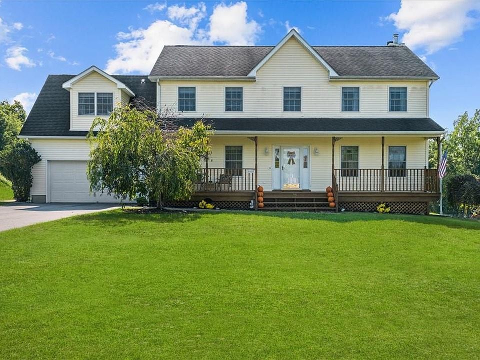 Desirable Rocking Chair Front Porch Farmhouse Colonial 4 Bedroom Plus Bonus Room, 2.1 Bath. Sitting Pretty on 1 acre property with privacy behind. Well maintained, checks all your boxes. 2 stories of hardwood floors. Updated Center Isle Granite Kitchen with stainless steel appliances & pantry, Formal Living Rm, Formal Dining Rm, Family Rm with wood-burning FPL, Master bedroom w/Master bath, double sinks, shower and Jacuzzi tub, WI closet. 3 additional bedrooms and full bath w/double sinks. Large bonus room over 2 car garage. NEW central Air. Second level laundry Room. Lower level partially finished with additional family room & exercise room. Deck, shed, retractable awning, alarm system, unilock block walkways, poured concrete foundation, invisible fence for your fur baby & more. Great commuting location minutes to the Taconic & I84 and to Rte 55. Come see all the Hudson Valley has to offer! Additional Information: Amenities:Storage,HeatingFuel:Oil Above Ground,ParkingFeatures:2 Car Attached,