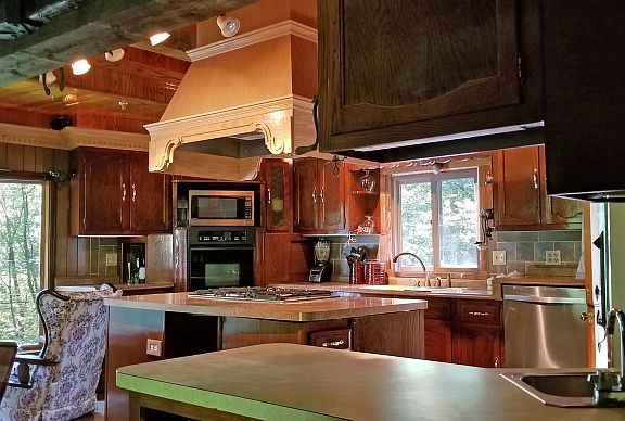 1 BR 1 BA rustic retreat w/private deck & hot tub off master! New furnace to be installed. Unique gem w/great features: craftsman mill-work, beamed & vaulted ceilings, stone FP w/woodstove insert, custom kitchen island w/trey ceilings, walk-in pantry, custom lighted cabinetry, 8-seat hot tub w/powered awning. Top of the line solar system & panels for no electric bills!!! Additional 2 contiguous acres w/water & electric (w/beautiful views) also available!!!
