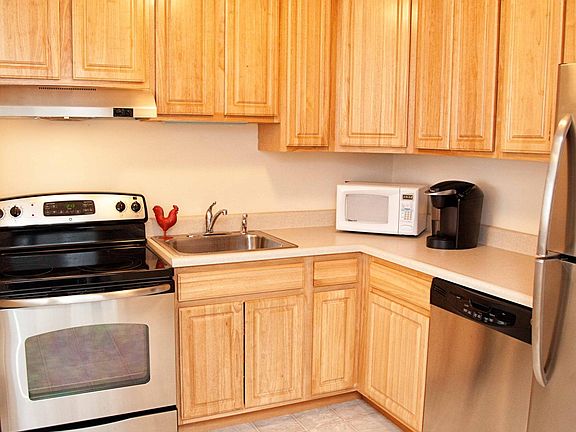 Bright and beautiful top floor unit with gorgeous kitchen cabinets and stainless steel appliances. One bedroom, one bath. Designated outdoor parking space. Common laundry and storage near unit. Freshly painted and brand new wall to wall carpeting. Utilities not included. First month rent and security deposit required. Full application, credit check and references also required. No pets.