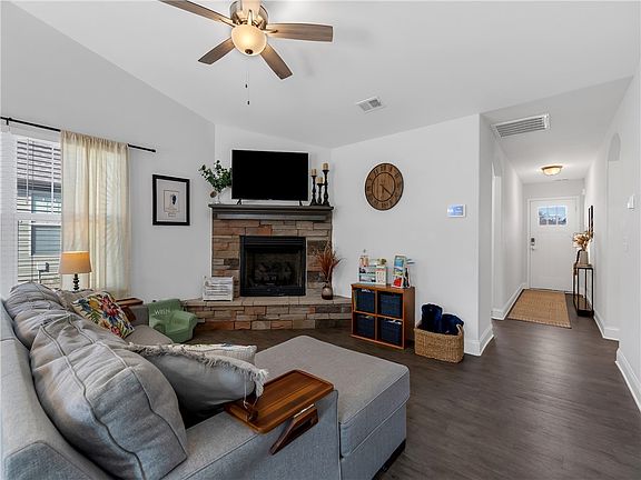 Located so close to downtown Greenville but feels like you live in the country when you pull into the neighborhood and see the mountains in thebackground. This home is just a few years old and has been gently lived in. Great neighborhood with very low HOA fees. This 3 bedroom split bedroom floor plan has Vinyl flooring through all of the main living, high traffic areas. An open floor plan let's you keep an eye on the kids and stayengaged with your guests from the kitchen. Granite countertops, plenty of cabinet space and stainless appliances leave no need for upgrades.The large living room has a gas log fireplace with a raised stone hearth. The dining area walks out to the covered back porch through yourdouble french doors and is perfect for grilling and relaxing while keeping you shaded. The large fenced in backyard is great for the kids, grandkids and fur babies to all run free. The primary suite has a walk-in closet and double sink vanity. Laundry Room, 2 car garage and trash pickupmake this a great place to call home.