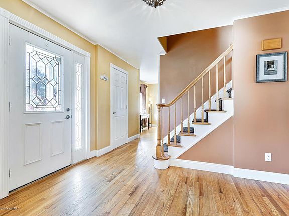 Beautiful COLONIAL w/ 5 bedrooms, 2.5 baths, partially finished basement and SALT WATER IN GROUND POOL. Instant gratification, exactly what you were looking for in a home. THIS ONE HAS IT ALL! Oversized Center Hall Colonial has a grand foyer, formal living room, formal dining and a GREAT ROOM w/ wood burning fireplace. Eat in kitchen has been updated. Main floor bath redone w/ custom tile work & cabinetry. 5 rooms on the 2nd level, all hardwood flooring & plenty of closet space. Master Suite w/ NEW updated Master BATHROOM * Custom tile work & lighting. BONUS finished BASEMENT area is a perfect space to play or read your favorite book. 20 X 40 IN GROUND POOL, home survellience system, rear deck, 2 car garage and the largest rooms you will find. Beautiful fire place = holiday perfection