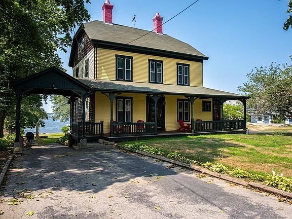 Fort Phoenix Point unspoiled Victorian waterfront not on the flood zone with period details, updates and fabulous views of New Bedford Harbor and skyline, this home is both gracious and comfortable. From the newly renovated front porch, step into the foyer and let the harbor view draw you into the home and its history! Wood floors, tiled mantles, six fireplaces each different with painted scenic tiles around them by the Fairhaven artist William C. Bradford and stained glass are some of the outstanding period details! The first-floor is a double living room layout, formal dining room, eat-in kitchen with original cast iron-enamel sink and a large pantry. The enclosed front porch opens up for a lovely scenic area. The yard goes right to the water and a private beach.