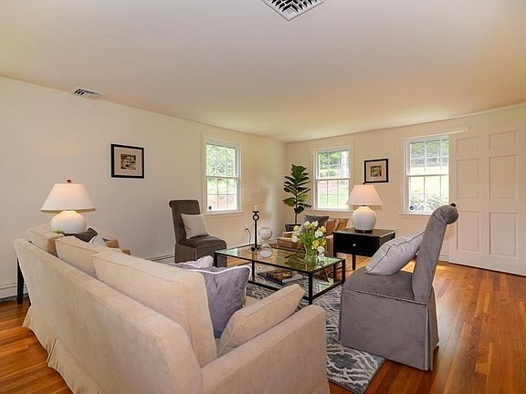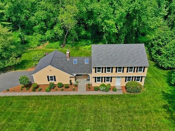 Enjoy autumn in this Impeccably maintained colonial in welcoming Wayland center neighborhood. Sun filled rms, neutral colors & flex flr plan features traditional living w/contemporary flair. Gleaming HARDWD FLRS; gracious foyer; front to back living rm overlooks woodlands; formal dining rm; updated kitchen w/gray wash cabinets & built in pantry, stainless steel appl., GLASS BACKSPLASH, GRANITE counters w/eat at peninsula. OPEN FLR PLAN kitchen flows to family rm w/cathedral ceiling, PROPANE FIREPLACE & access to TREX deck; 1ST FLR BATH w/shower, 2nd flr master suite w/dual closets, UPDATED ENSUITE BATH w/tiled shower; 3 add'l well sized bedrms & 3rd tiled UPDATED BATH w/tub; finished WALKOUT LL tiled playrm w/picture window, laundry rm, exercise, storage & utility space; 2 car gar w/auto dr opener; newly painted inside & out. CENTRAL AC (2014), NEW HARVEY WINDOWS (2013); NEWER ROOF(hse2008, gar2019); LAWN IRRIG; K-12 bus pickup 3 drs down.