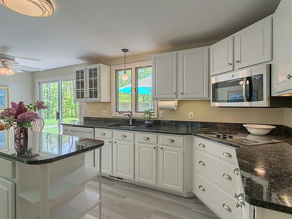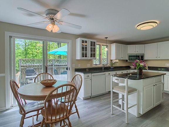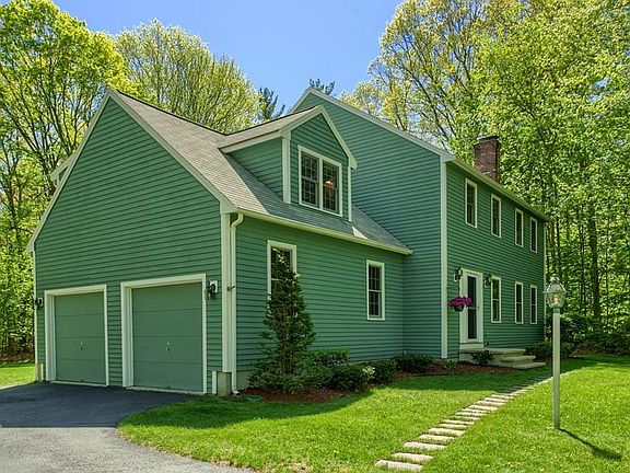 West Groton cul-de-sac Colonial on beautiful 1.35 ac lot. Huge, level backyard. Easy access to miles of trails invite to enjoy & explore the outdoors. Meticulously maintained & lovingly updated, this home shines with pride of ownership! Much is new in the light-filled Eat-In Kitchen: Granite counters, double wall ovens, microwave, refrigerator, vinyl plank flooring. Step onto the deck to enjoy al fresco dining right off the Kitchen. Dining Room opens to Living Room: masonary fireplace, Bose Home Theater System & wall-mounted TV included. Half Bath & Laundry. 2nd floor: Large Family Room over garage w/Kitchenette (beer fridge, bar sink & cabinets), built-in book cases & window seat with storage -> could be used as 4th BR. Master Suite w/private Bath, walk-in & 2nd closet. Two additional Bedrooms. New flooring in all BR's, upstairs Baths & Family Room. Pull-down attic, whole house fan. Unfinished basement. Reeds Ferry storage shed. Town water. Private septic; Title 5 passed; 4-BR system