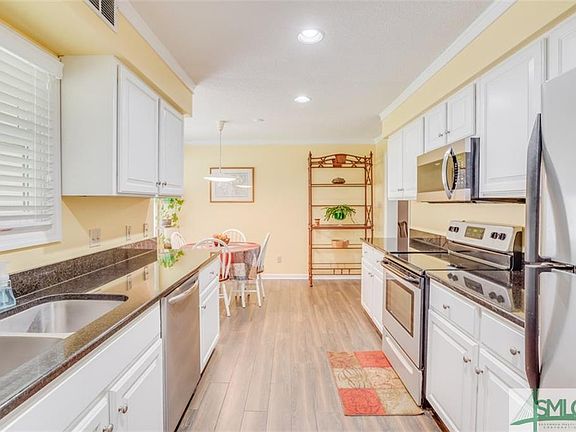 Renovated Franklin Creek Townhouse walk to the Deck and the Franklin Creek Pool! Stately, hardwood, porcelain/ tile floors on the main floor. Beautiful open kitchen with stone countertops, white cabinets and eat in breakfast area which is filled with natural light. Full bath on the main floor is updated with oversize vanity and opens into the downstairs master bedroom. Upstairs is an additional master suite. Large living / dining room combo with high ceilings, working fireplace. Cozy office opens onto a back sunroom. ( or could be 3rd bedroom/ study ) Outside is a very private, brick paver patio, overlooking a beautiful lagoon. Many improvements made to this home with options of a master suite upstairs or downstairs. Priced to sell!