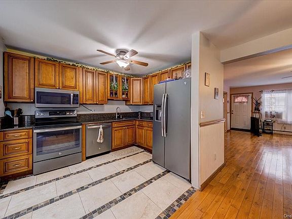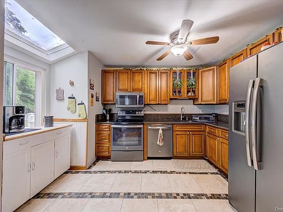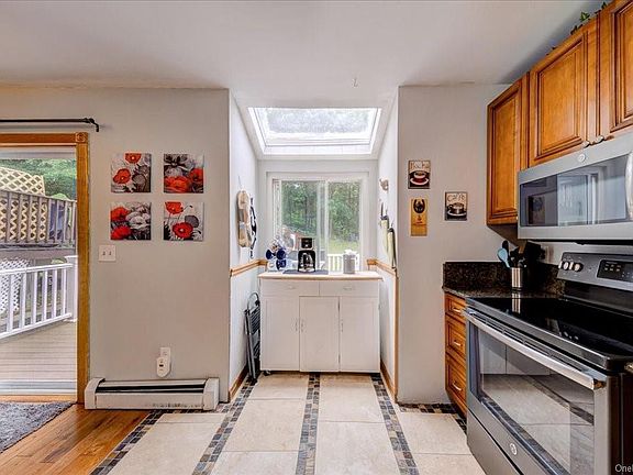 Located on a quiet cul-de-sac with mountain views, this three level Townhome (*NO HOA*) is centrally located to Village of Washingtonville, close to highways, trains and shopping. Once inside you are welcomed into large living room with fireplace, open to dining area and kitchen with updated maple cabinets, granite counters and all new appliances! Just out the back door is a spacious Trex deck and level backyard. Upstairs are two large bedrooms. Primary bedroom offers walk-in closet and access to full bathroom.
