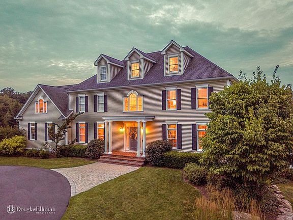 Spectacular coastal compound! This sun-filled, 2004 stand out colonial estate situated on 4 parklike acres with gunite pool, bordering a pond, hidden behind mature trees, with a circular parking courtyard on a sleepy cul-de-sac is minutes to Guilford & Madison's treasures of hiking trails, beaches, restaurants and award-winning town greens. Beautifully presented w/a floor plan that includes a grand 2-story foyer opening to the chef's kitchen, family room with a fireplace, formal dining room and library (with built-ins & bay window). A mudroom with ample storage & laundry area w/a 1/2 bath off the patio are useful for entering from the side deck after a swim in the pool, a day at the beach, gardening or ice skating on the pond. A 2nd powder room off the dining room and sunny den complete 1st floor. Wonderful detail & gracious scale found throughout this home. The upper level includes 4 spacious bedrooms, including a master suite with a large walk-in closet, and spa-like bathroom. A separate staircase and large room with en-suite bath could be used as the 5th bedroom, office, or Au Pair/In-Law suite. The attic was transformed into a magical playroom. The heated gunite pool is surrounded by a beautifully landscaped patio area. C/Air, C/Vac, irrigation system & gen. hook-up. 3-car garage. A large exercise room in the lower level. Two hours from NYC, Boston, ~ easy commute up I-95.