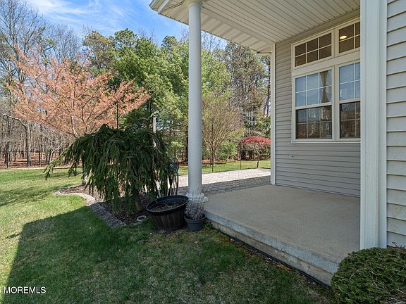 Appealing architectural design, wooded buffer at the rear and dramatic ceiling heights that invite you in. The interior offers an abundance of recessed lights, dining room with bay window, coffered ceiling in the dining room and in the primary suite, fireplace framed with custom built-ins, and many uv protected windows. The kitchen is equipped with a full appliance package, pantry closet and countertop seating area. 2018 Carrier HVAC and AO Smith water heater,150 Amp electrical service, covered front and rear porches, paver patio, and 2 car garage. The community clubhouse offers 23,000 square feet of amenities, including indoor and outdoor pools, a fitness center, a variety of clubs, and more. Ideally located just 1.5 miles from the GSP (exit 67), Mirage is close to shopping, historic sites, antique shops, and a lively boardwalk perfect for summer entertainment, fishing, and crabbing. This is an age restricted/gated community.