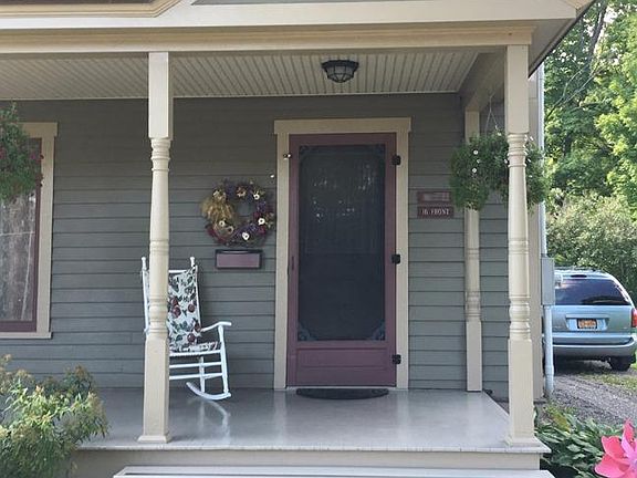 Wonderfully cared for and lovingly attended to village home. Terrific curb appeal features a brand new front wrap-around porch with cyprus flooring. Classic entry foyer and inviting family room/parlor with period style tin-hammered ceiling. Spacious living room features newer enamel cast iron gas stove, and the formal dining room provides plenty of room for family and entertaining. The first floor full bath and laundry provide potential for first floor bedroom/bath. This versatile four bedroom home has a space for everyone, including a quaint screened rear porch eating nook, plus a breezy second floor sleeping porch for you to enjoy. The spacious yard has been improved with an updated barn/garage with newer roof (2012), new sills, and a new concrete floor, plus offers 2nd floor loft / storage. The home is located in a convenient residential neighborhood alive with family, school, and community park activities close by for you to walk to and enjoy. Pool, ballfields, and playground are right down the street! Come and take a look at this beautiful Farmhouse Victorian home and get ready to fall in love!