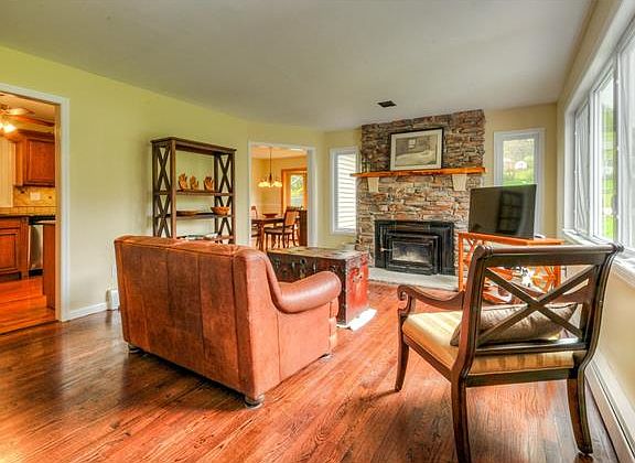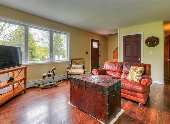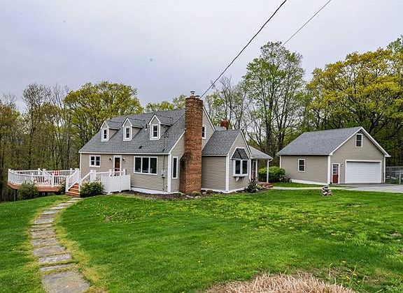 Welcome to this charming cape cod nestled on over 5 private acres in the town of Cornwall! The rich details of this home include beautiful hardwood floors, bay window, a Dutch door, plenty of natural light, stone fireplace and a wood burning stove. The cooks kitchen offers granite countertops, stainless steel appliances and panty. There is a bedroom and full bath convienently located on the first floor and two to 3 additional bedrooms and a full bath on the second floor. The lower level has been totally redone and is bright, spacious and includes a full bath and ideal as a home office or den. The French doors lead to the tiered Timbertech deck and private yard. There is plenty of room for tools and lawn equipment in the detached 2-car garage with loft. Ajacent to the garage is a fence kennel area. There is also an invisable fence for the protection of your pets. This home is conveniently located to schools, West Point, Storm King and the NYS Thruway.