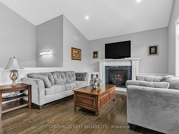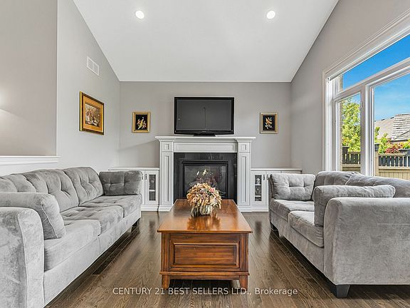 Step Into Your Dream Home! This Spacious Home Offers Over 2,700 Sq. Ft. Of Living Space. This Gorgeous Home, With Elegant Stone Exterior, Greets You With High Cathedral Ceilings And Abundance Of Natural Light Creating An Inviting And Airy Ambiance. The Main Living Area Features Hardwood Flooring, And A Gas Fireplace In An Elegantly Built-In Wall-To-Wall Unit. The Modern Kitchen Showcases Stylish Quartz Countertops And A Large Island That Seamlessly Combines Style & Functionality; Complemented By A New Gas Stove For Ultimate Cooking Experience. This Home Also Features A Central Vacuum System, Providing Effortless Cleaning. Venture Outdoors To A Cozy Backyard With Evergreen Trees Providing Privacy And Tranquility. The Newly Finished Basement Offers A Large Bedroom With A Walk-In Closet, A Spacious 3-Piece Bathroom, A Second Fireplace In A Floor-To-Ceiling Stone Facade, As Well As Two Separate Living Spaces Perfect For Entertainment And Relaxation. Practical Amenities, Including A Main Floor Laundry Room, An Air Exchanger Circulating Fresh Air Throughout The Home, A Large Well-Built Shed, And Easy-To-Use Underground Sprinkler System.
