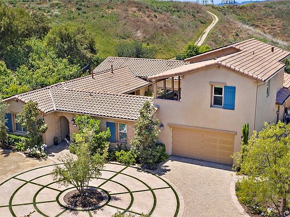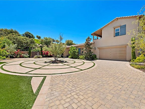 Live your dreams at this stunning custom-caliber residence at Covenant Hills in Ladera Ranch, where generous space inside and outdoors provides ample room for relaxed day-to-day living, formal entertaining, and casual get-togethers under the sun. A long driveway and circular motorcourt introduce beautiful grounds that back to natural hillsides, encompass over 18,020+ s.f, and feature a gated courtyard entrance, large lawn, spacious side yard with raised garden beds for farm-to-table freshness, numerous fruit trees and an inviting patio with picturesque sunset views. Santa Barbara-influenced style embellishes the exterior and a single-level interior that measures approx. 4,100 s.f., complete with 5 bedrooms, a den and 5.5 baths. A separate casita with exterior staircase is ideal for guests, and the main house is distinguished by a great room with vaulted ceiling, fireplace, media center & dual pocket doors to engage the cool breeze & indoor/outdoor living. Powered by an owned solar system w/ battery back-up, the home is complemented by upgraded indoor & outdoor lighting, multi-zone audio, high-end carpet, marble tile flooring, and an oversized laundry room w/ sink and refrigerator space. Entertain and prep for festive meals in a gourmet kitchen w/ a large island, granite countertops, a butler's pantry, morning room & upgraded stainless steel appliances. Vaulted ceilings enrich a master suite w/ patio access, window seat, dual vanities, a soaking tub, shower & walk-in closet.