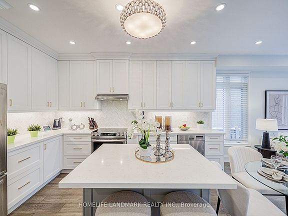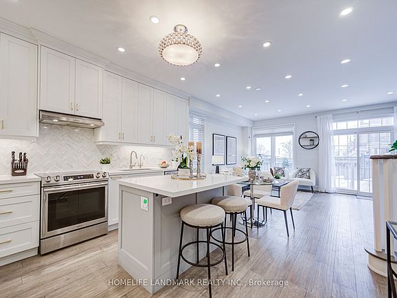 Exquisitely upgraded freehold townhome in prime Thornhill Woods! Move-in ready with over $30K in recent upgrades. Features a high-end kitchen with quartz countertops, large centre island, new water filtration system (2024) and kitchen faucet (2025). Enjoy a stunning new backyard oasis (2024) with interlocking stone, aluminum railings, and built-in garden. Primary bedroom offers his & hers closets and 3-pc ensuite; two bedrooms include custom Closets-by-Design organizers. Renovated laundry room (2024), smart Ring alarm, furnace (2023), roof (2020). Extra-wide parking. Steps to plaza with restaurants, bank, doctor's office, community centre, schools, transit and Hwy 407. No maintenance or POTL fees!
