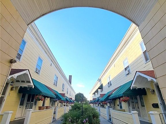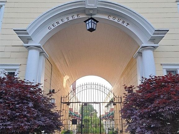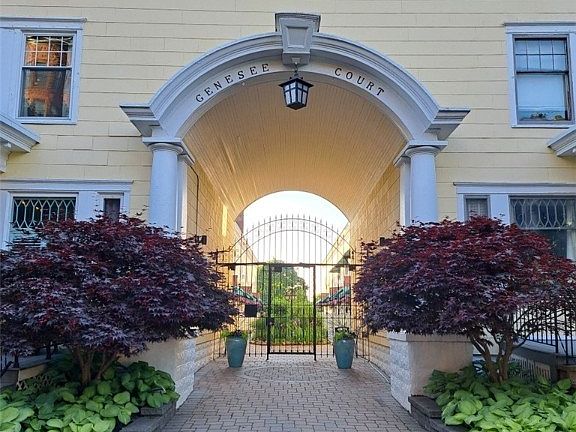 Welcome to Genesee Court, where one can enjoy a truly unique living experience. This historic 1914 condominium exudes timeless design and enduring character. As you pass through the iron gates and into the courtyard, you’ll be in awe of the landscaping with a tranquil water fountain. Of 20 connected units, 16 feature charming green awning-covered front porches, creating a peaceful, inviting atmosphere. Step inside this remarkable condo incorporating the perfect blend of history and modern convenience. The interior has been completely transformed with refinished hardwood flooring adding an elegant touch to the space, with original steam radiators, doors, and two lovely fireplaces. The updated kitchen includes all new appliances, and you’ll have the convenience of first floor laundry. The main upstairs bedroom offers its very own fireplace that adds warmth and charm. Upstairs, you’ll also find the full bathroom featuring a gorgeous claw foot tub. There is a separate entrance to the basement with the perfect storage solution for seasonal items. Exterior maintenance is taken care of for you! Don't miss your chance to be a part of this exceptional community at Genesee Court!