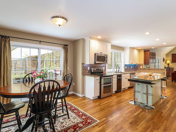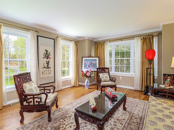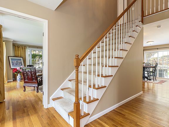 Relax on your backyard deck after a long day of work and listen to the soothing sound of trickling water from your koi pond. Your private oasis welcomes you. Yet you are just minutes to the highway for easy commuting, in-town shopping and restaurants. inside, the flowing open floor plan is perfect for entertaining; prepare drinks at the family room's wet bar with beverage refrigerator, light a roaring fire in the fireplace, prepare meals in the large, fully equipped eat-in kitchen with granite countertops and stainless steel appliances. Both the light filled family room and kitchen have access to the large deck for outside lounging and dining. This well maintained 9 room Colonial with hardwood floors throughout the main level and carpeting upstairs has over 3,000 square feet of living space; a master bedroom suite with 2 closets, one a large walk-in, spacious double vanity bathroom, 3 additional bedrooms and full bath and a rec/playroom ( man cave?) on the lower level. Central air throughout. Also included is a walk-in kitchen pantry, main level laundry room, spacious dining room, attic storage and big 2 car garage. Huge double door shed, 40 x 14 foot backyard deck, extensive outdoor lighting, in ground sprinkler system, newer paved driveway, professional landscaping and a peaceful, pretty setting set back from the street. Come see this warm, inviting home and its unique pond side setting. A home for all reasons.