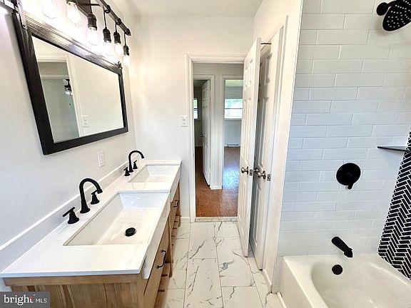 Come and see this newly renovated 3-bedroom rancher in the desirable neighborhood of Marlton in Evesham Township. Beautiful curb appeal awaits you with this move-in ready home. Equipped with an all new kitchen complete with stainless steel appliances, granite countertops, new cabinets, and new flooring. Recessed lighting and hardwood floors add a classic yet modern feel to this attractive home. 3 well-appointed bedrooms all feature stylish ceiling fans. A stylish bathroom renovated with double farmhouse sinks and a two-toned shower design. The home features an open concept floor plan that is perfect for entertaining; a living room with plenty of natural light, and an open dining area that leads to the kitchen. This home also features central air, a gas heating system, new water heater, 100-amp electrical service, and a spacious attic for storage needs. The detached 1 car garage and paved driveway offers off-street parking as well as organized storage. A beautiful enclosed sun porch offers peaceful views of the plush property and large fenced-in backyard. Conveniently located near area schools, shopping centers, restaurants, Rt. 73, Rt 70, 295 and the NJ Turnpike. Don’t delay, submit your offer today! AS IS. Seller will not make repairs.