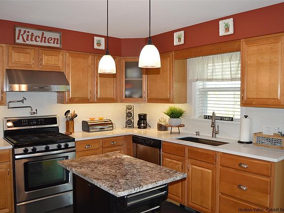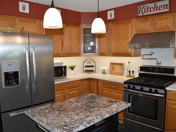 FIRST TIME ON THE MARKET!! This Magnificent Colonial HAS IT ALL, including a SPECTACULAR HUDSON RIVER VIEW!! CAREFREE living can be yours in this TOTALLY TURN-KEY home! Wake up in the morning with a cup of coffee and watch the stunning sun rises. Spend your evenings dining Al Fresco on the huge, open two-level deck, or chill at the fire pit, all while admiring the Majestic Hudson River. The country style kitchen with island, stainless steel appliances, quartz countertops, and pot filler at the gas stove top all make for a pleasurable cooking experience, every time! There is an open concept design that has a nice flow with a dedicated dining area and half bath for easy entertaining. The primary bedroom suite, also with River View, includes a large walk-in closet and is conveniently located on the first floor. Upstairs, you will find three more spacious bedrooms with ample closet space and another full bathroom. There is lots of natural light as well as hard wood and ceramic flooring throughout this tastefully decorated home. The heated full basement has 9ft. ceilings and walks out to the back yard. With its own separate entrance, and windows to let the light in, this area could be finished for additional living space. So many possibilities await...think - home office, gym, media/game room, or artist studio. The oversized 2 car detached garage and workshop at the base of the property has brand new insulated doors and a ductless split. Stay cool in the summer and warm in the winter while tinkering on your motor vehicles or tackling some do it yourself projects. Located just off Ulster Landing Road in the Town of Ulster...this country road is home to Robert Post, Charles Rider, and Sojourner Truth Parks for Boating, Swimming, Kayaking, Fishing, Picnicking, and MORE! Minutes from the Rhinecliff Amtrak Train Station, Trailways Bus Station & NYS Thruway. Less than a 2 hour drive from NYC. So close to shopping & dining, yet the private setting makes it feel like you are a million miles away! Motivated Sellers are leaving the area and say Make Us An Offer!!