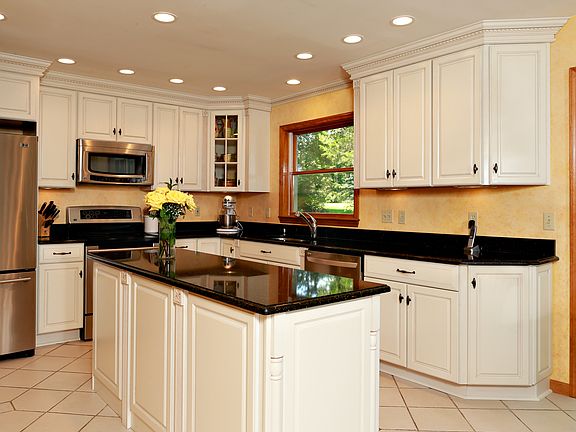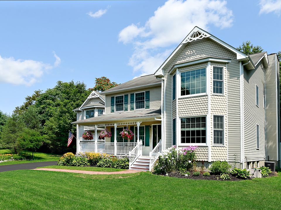 Lovely four bedroom Colonial with Victorian accents and wrap around front porch. This spacious home has open traditional layout, with numerous updates including gorgeous designer kitchen with silestone counters, huge center island, marble tile and stainless appliances, cozy family room with wood burning fireplace, huge living room with walk-in bay window area, huge master bedroom suite with his and her walk-in closets and bathroom with whirlpool tub; enormous bonus rm on 2nd level; lower level features playroom and office. Too much to list!