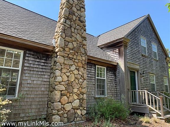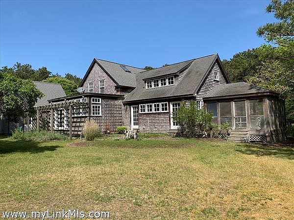 This custom Sam Sherman designed home has great flow and comfort for any buyer. Upon entering you are immediately impressed by the custom great room with its cathedral ceiling, open hand hewn beams and oversize stone fireplace. To the right is a powder room for privacy and a separate master bedroom first floor suite. Walking by a custom copper sink wet bar you enter the kitchen which is open and sunny and bathed in a pastoral view of some of the most beautiful grounds of any home on the island. Also, off the great room is a three season porch which also has great view of this beautiful land. The second floor has two nice bedrooms which share a large bath. There is a garage to store two cars and a bonus unfinished room above. The lot is oversize at 5.2 acres and the Green Pastures development also surrounds the property with a large band of conservation. The development also owns the largest dock on Chappy which you have rights to and a mooring comes with the property. This is a well thought out home of comfort and is sited in a well thought out development for an extremely comfortable lifestyle!